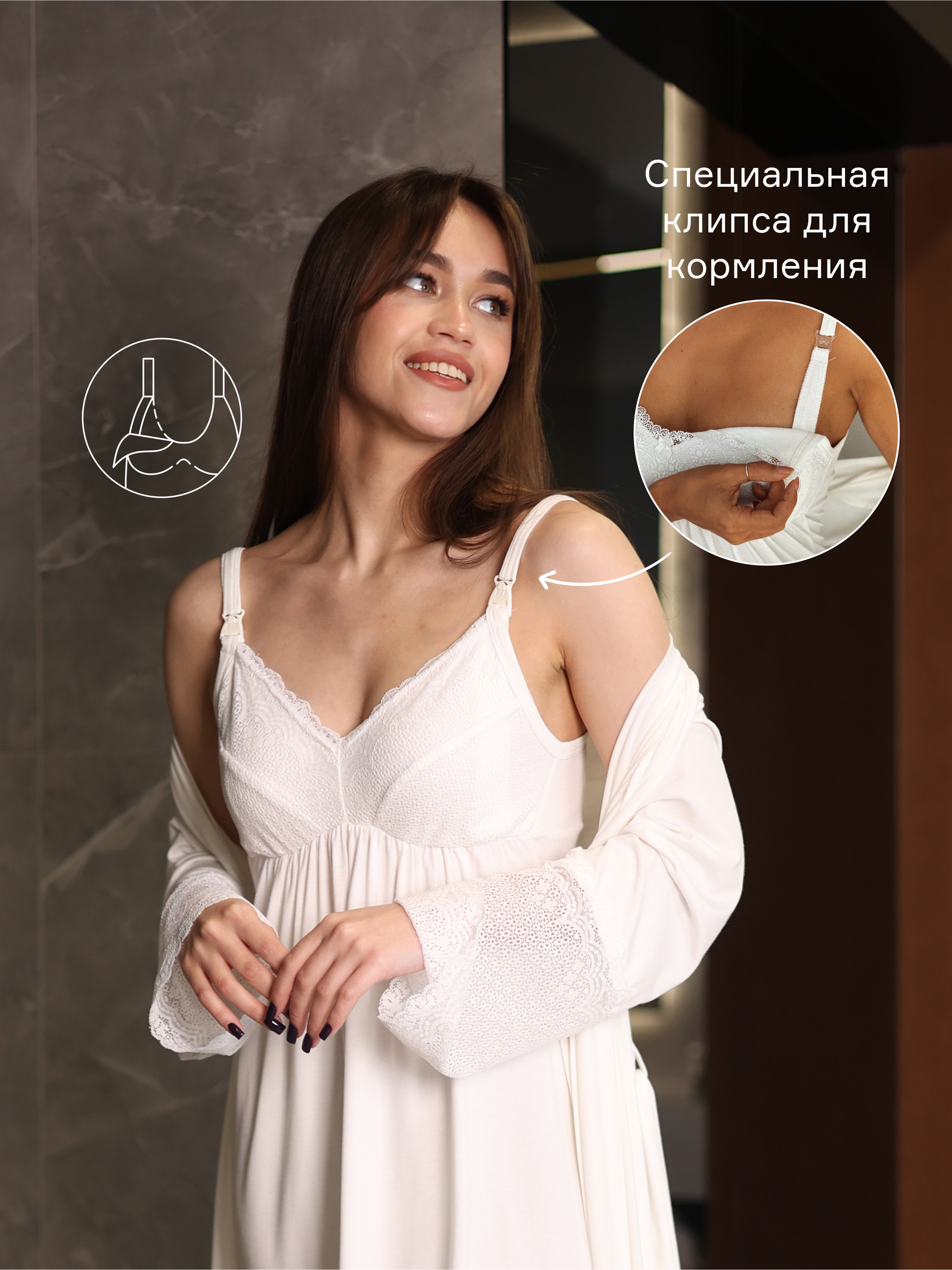Пеньюар для беременных и кормящих женщин из натуральной хлопковой ткани. Уютный, нежный, стильный, максимально комфортный комплект состоит из халата и сорочки. Халат на запах с широким поясом, рукавом 3/4 и карманами. Длина -миди. Сорочка с регулируемыми бретелями и застёжкой - клипсой для удобного кормления. Станет прекрасным подарком для мамы, подруги, на выписку, день рождения. Подойдет как для высоких женщин, так и не высоких. Нас так же ищут по запросам: халат женский, белье в роддом, летняя ночная рубашка, домашняя одежда, для беременных и кормящих, в роддом, халат домашний, комплект одежды, женская комбинация, одежда для дома, пижама. Сорочка для рожениц позволяет коже свободно дышать, хорошо впитывает влагу, не прилипает к телу и подойдет как ночная рубашка в роддом и сорочка для родов. Домашняя одежда для кормления приятна к телу и не сдавливает увеличивающийся в размерах или уже большой животик. Ночнушка женская для беременных подчеркивает силуэт и дарит максимальный комфорт. Для будущих мам на маленьком сроке рекомендуем брать халат с ночнушкой на 1-2 размера больше, чтобы к моменту посещения роддома, домашний халат не стал Вам мал.