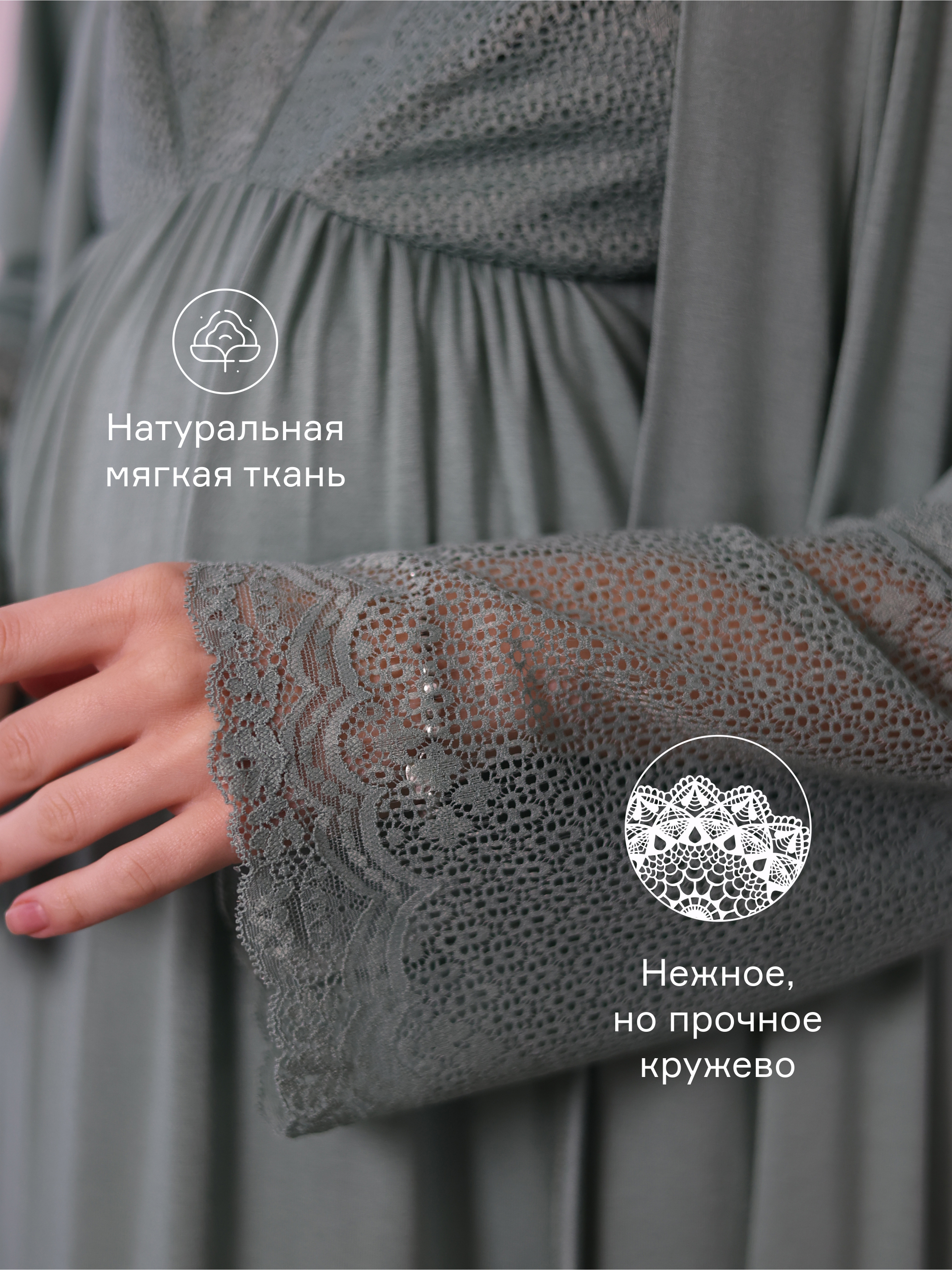 Пеньюар для беременных и кормящих женщин из натуральной хлопковой ткани. Уютный, нежный, стильный, максимально комфортный комплект состоит из халата и сорочки. Халат на запах с широким поясом, рукавом 3/4 и карманами. Длина -миди. Сорочка с регулируемыми бретелями и застёжкой - клипсой для удобного кормления. Станет прекрасным подарком для мамы, подруги, на выписку, день рождения. Подойдет как для высоких женщин, так и не высоких. Нас так же ищут по запросам: халат женский, белье в роддом, летняя ночная рубашка, домашняя одежда, для беременных и кормящих, в роддом, халат домашний, комплект одежды, женская комбинация, одежда для дома, пижама. Сорочка для рожениц позволяет коже свободно дышать, хорошо впитывает влагу, не прилипает к телу и подойдет как ночная рубашка в роддом и сорочка для родов. Домашняя одежда для кормления приятна к телу и не сдавливает увеличивающийся в размерах или уже большой животик. Ночнушка женская для беременных подчеркивает силуэт и дарит максимальный комфорт. Для будущих мам на маленьком сроке рекомендуем брать халат с ночнушкой на 1-2 размера больше, чтобы к моменту посещения роддома, домашний халат не стал Вам мал.