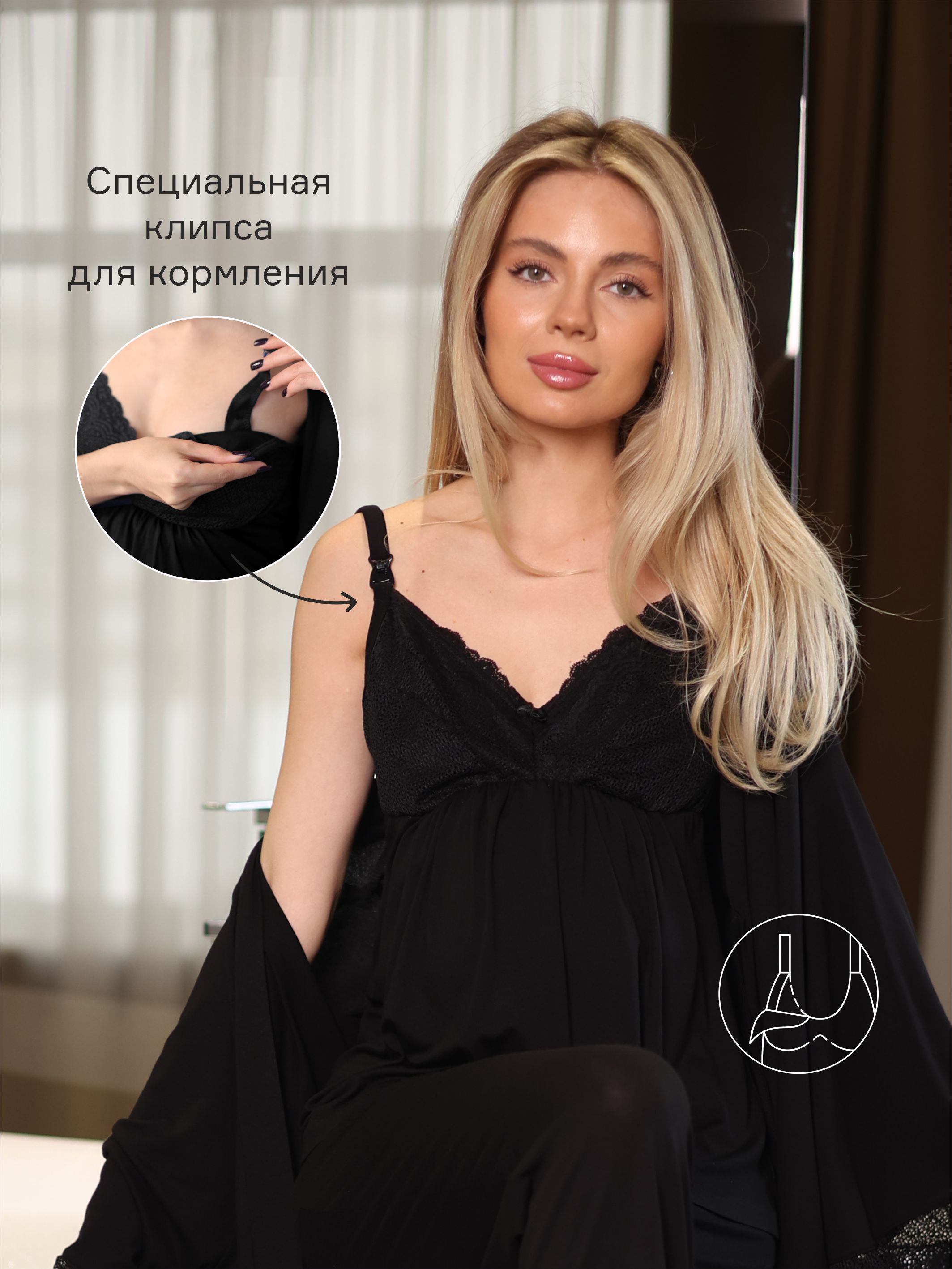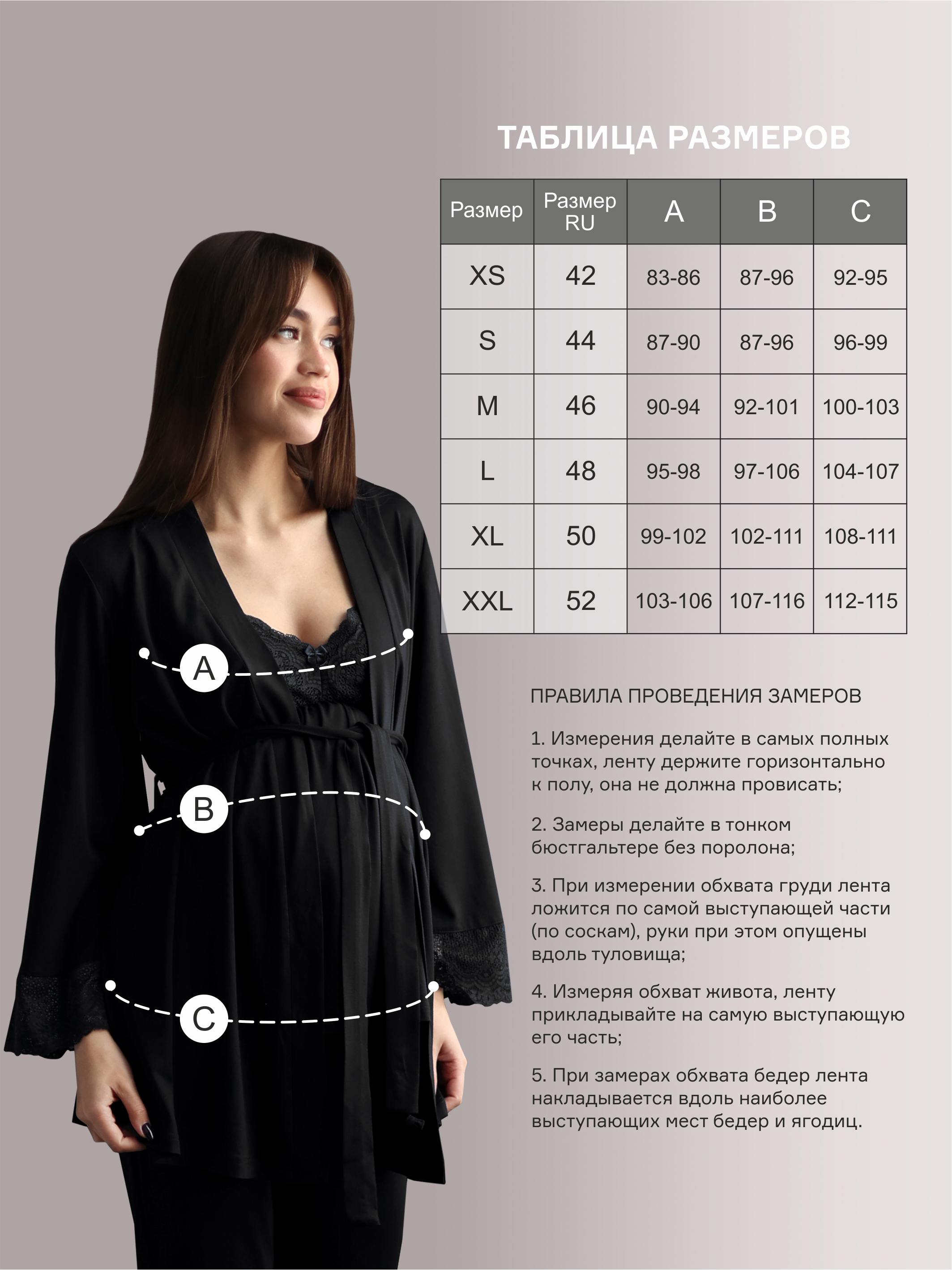 Нежный и эластичный комплект тройка от Optmix для беременных и кормящих иготовлен из турецкой вискозы, которая была выбрана специально для нежной кожи беременных и кормящих, что бы не вызвать раздражение . Удобен в носке, легкий доступ при кормлении. Штанишки с майкой созданы, учитывая растущий животик. Идеально подходит для дома и сна.1. Халат:- Длина по спинке - 72см- Длина рукава - 55см- Ширина рукава - 27см1. Майка:- Длина по спинке - 46см1. Брюки:- Длина по боковому шву - 106см- ширина по низу - 22см Если Вы ищите: домашняя одежда для женщин, бюстгальтер для кормления, одежда в роддом, одежда для беременных, бюстгалтер женские, пижама женская, пижама для будущих мам, пижама большие размеры, комплект в роддом, сорочка с халатом для беременных, костюм для беременных, пижама для беременных и кормящих, костюм кормящих, комплект халат и сорочка в роддом, сумка в роддом, собираемся в роддом, пижама больших размеров, то наш костюм для беременных и кормящих мам идеально Вам подойдет.